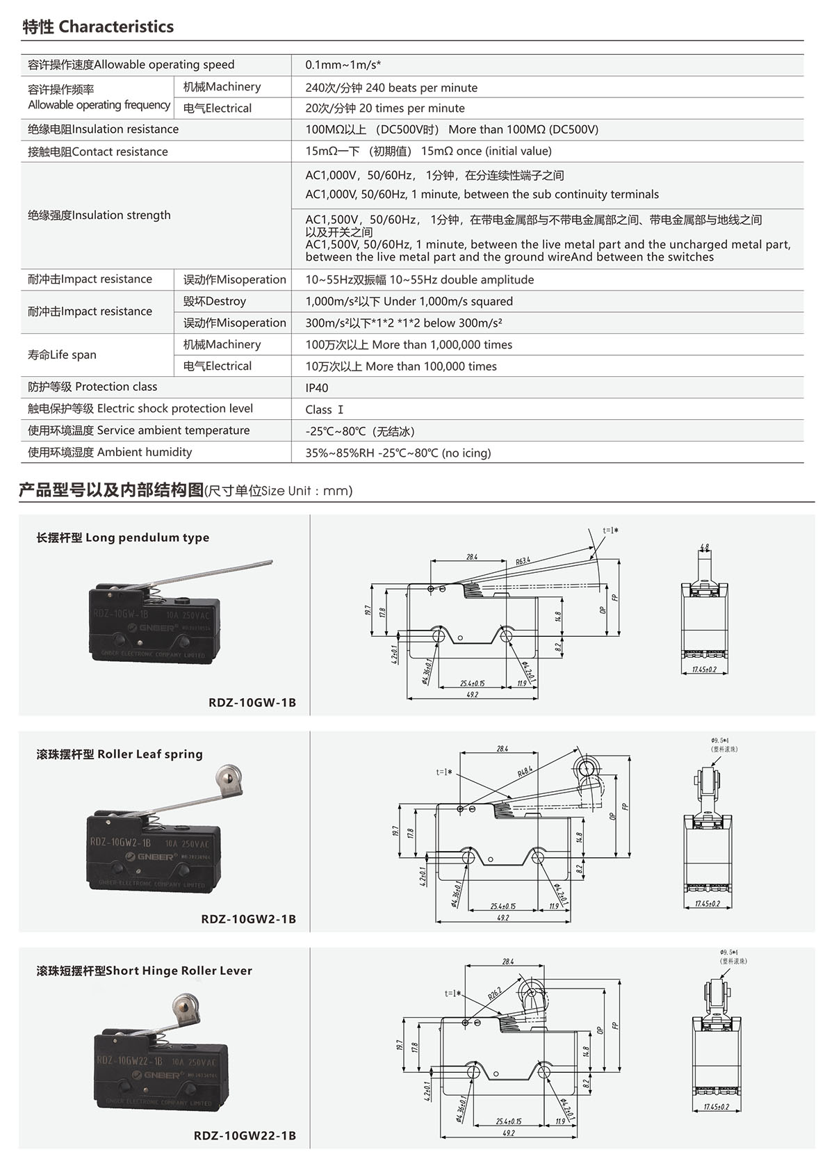 RDZ系列双触点微动开关