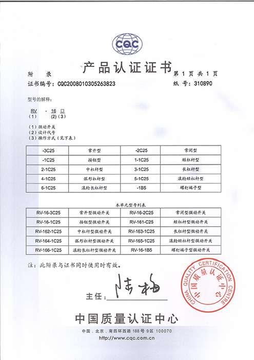 RV-16-CQC证书型号说明