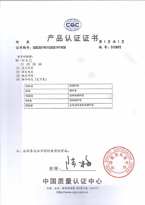 RX-10-CQC证书型号说明