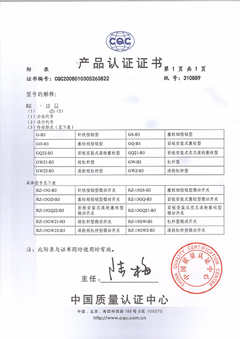 RZ-15-CQC证书型号说明